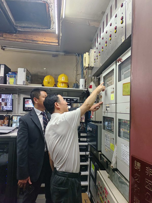 范云軍先后來到香港尖沙咀維景酒店、九龍維景酒店和旺角維景酒店,對客房、中西餐廳、廚房、監(jiān)控室、設備房、布草房、消控室、配電室等區(qū)域開展檢查。重點檢查了酒店廚房衛(wèi)生狀況、食品留樣及煮食器具的清洗消毒情況,以及安全出口及疏散通道是否暢通,應急照明燈、滅火器、自動報警系統(tǒng)等安全、消防設施器材是否完好有效等情況。對有關設備的日常運行記錄、應急處置方案及演練情況等進行了安全檢查。