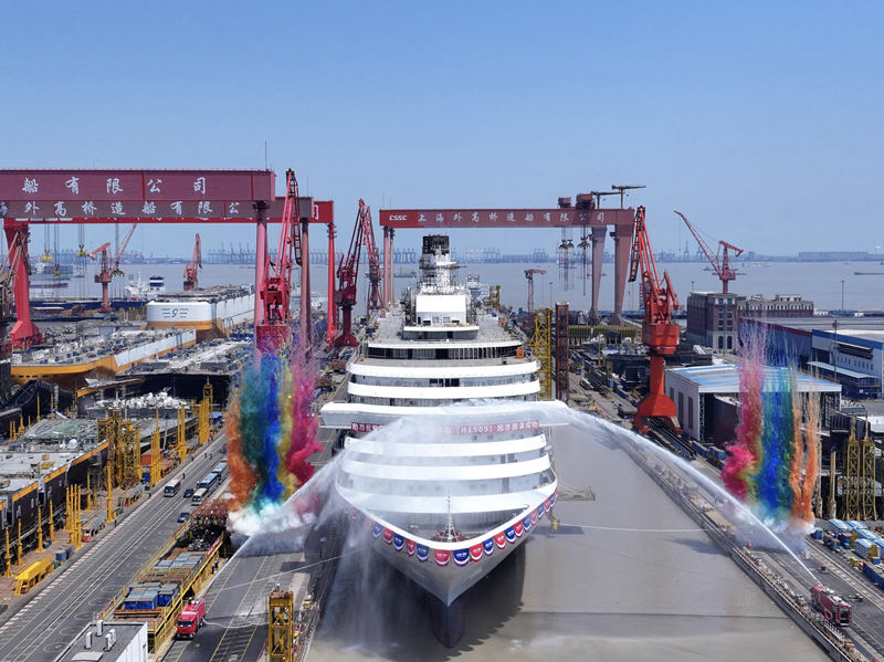4月28日,第二艘國產(chǎn)大型郵輪“愛達·花城號”在上海外高橋造船有限公司順利實現(xiàn)塢內(nèi)起浮。工信部裝備工業(yè)二司司長徐春榮、文旅部產(chǎn)業(yè)發(fā)展司副司長馬力,中國船舶集團總經(jīng)理王國強、副總經(jīng)理胡賢甫,集團總經(jīng)理范云軍、董事兼華夏國際郵輪董事長石善博,上海市經(jīng)濟和信息化委員會副主任蒲亞鵬、浦東新區(qū)副區(qū)長李慧等出席儀式。