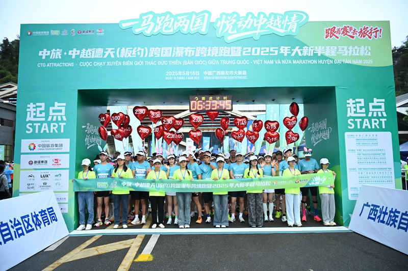 5月18日,由集團(tuán)冠名的“中旅·中越德天(板約)跨國(guó)瀑布跨境跑暨2025年大新半程馬拉松”在中旅國(guó)際所屬廣西德天景區(qū)舉辦,本次賽事由廣西壯族自治區(qū)體育局、越南高平省文化體育和旅游廳、廣西崇左市人民政府主辦,賽事提供了“邊境特色與體育精神交融”的全新體驗(yàn),吸引來自國(guó)內(nèi)外3000余名跑步愛好者參加。比賽共設(shè)有半程馬拉松(21.0975公里)和歡樂跑(約6公里)。起點(diǎn)位于碩龍口岸,終點(diǎn)設(shè)在跨境旅游合作區(qū)的中越風(fēng)情街。參賽者沿途即可領(lǐng)略亞洲第一大跨國(guó)瀑布、中越人文風(fēng)情、跨國(guó)壯鄉(xiāng)風(fēng)韻。