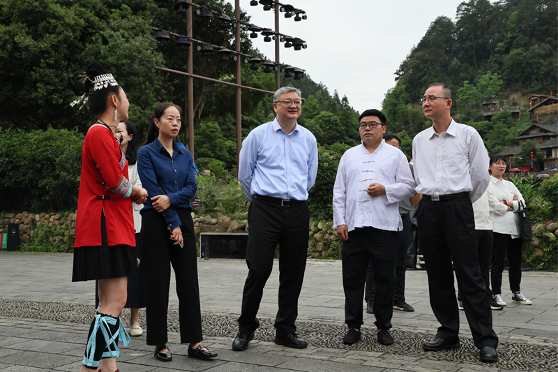 在黎平期間,王海民一行沿著總書(shū)記的考察路線,深入肇興侗寨調(diào)研侗族文化展示中心,侗鄉(xiāng)織、染、繡特色產(chǎn)業(yè)基地,集團(tuán)幫扶項(xiàng)目侗族大歌研學(xué)基地,詳細(xì)了解民族文化傳承、鄉(xiāng)村旅游產(chǎn)業(yè)帶動(dòng)和群眾受益增收等情況,并代表集團(tuán)領(lǐng)導(dǎo)班子看望慰問(wèn)掛職干部。