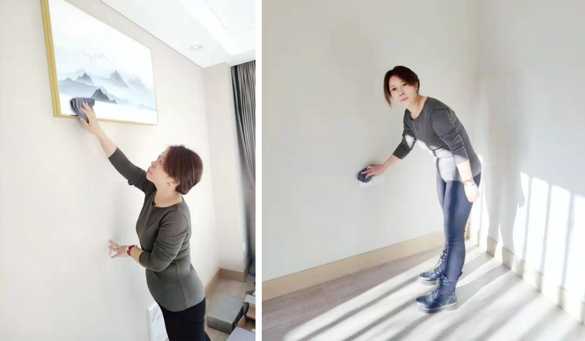 12月3日第一次進入奧運村,我跟著老樓長進到自己所屬5號院3棟樓170間客房區(qū)域。沒等熟悉環(huán)境,就接到通知,12月21日要組織全要素測試??粗鴺堑览镅b修工人還在忙碌,樓梯間各種裝修垃圾,而只有幾位一線員工在做清潔,我深感任重道遠。當天下午,在熟悉奧運村9個院落和27個樓宇分布的時候,初來乍到,感覺像走在迷宮,加上第一天暈車還沒完全恢復,這刺骨的寒風一吹就頭疼的厲害。恰在這時,單位領導發(fā)來了關心的信息,讓壓力面前的我感受到了維景一家親的濃濃暖意。中旅人資部王通得知有同事暈車,立馬買來了暈車藥。駐地領導為保障我們的生活起居奔走,精心安排,大到被子枕頭,小到衣架面盆垃圾袋……這些都讓我在忙碌中體會到了冬日的暖陽。