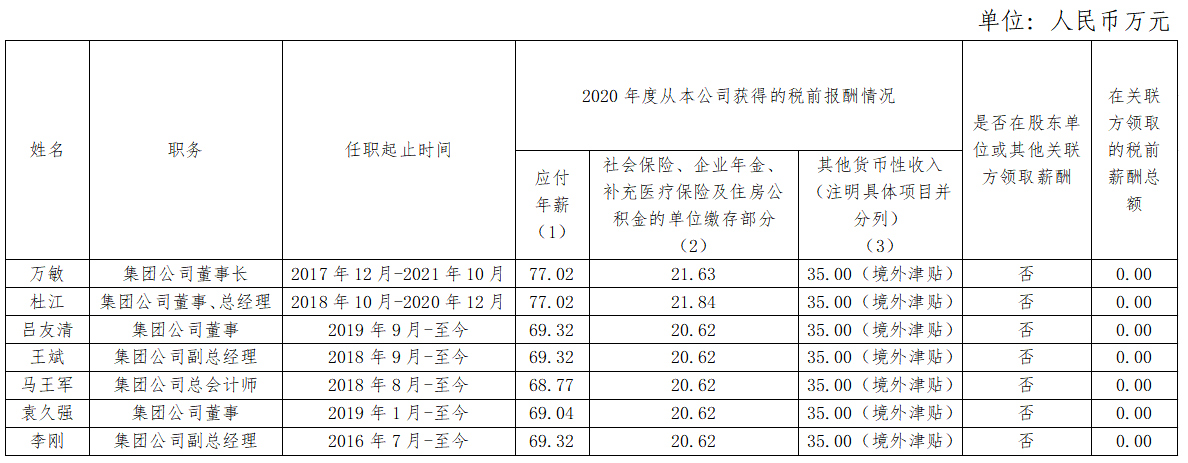 1.上表披露信息為我公司企業(yè)負(fù)責(zé)人2020年度全部應(yīng)發(fā)稅前薪酬(不含2020年發(fā)放的以往年度薪酬)。