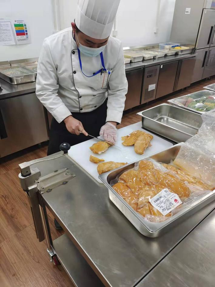 緊繃了兩天的神經(jīng)在測試結(jié)束后,才真正放松下來。大家收到的反饋,對涼菜這塊兒還是比較滿意的,順利度過了“小考”,但誰也不敢放松,畢竟測試才兩天,冬奧、殘奧加起來一個(gè)多月;測試的人數(shù)少,開賽后人數(shù)多,而且來自世界各地;測試用餐準(zhǔn)備的菜品相對較少,開賽后菜品種類和數(shù)量都會增加,比如麥片,測試時(shí)就早餐準(zhǔn)備,開賽后每餐都要準(zhǔn)備,早餐8種、正餐4種;測試時(shí)她們是7個(gè)人,現(xiàn)在她們有20個(gè)人了,有2/3的人是沒有經(jīng)歷過“小考”的生手。為了二十多天后的“大考”也能順利度過,他們每天堅(jiān)持培訓(xùn)、隨時(shí)抽考、檢查設(shè)備、保持涼菜房干凈衛(wèi)生清潔,絲毫不敢懈怠。