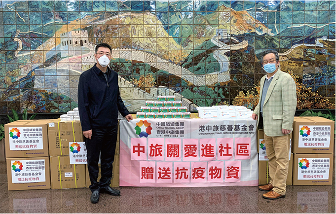 香港第五波疫情形勢持續(xù)嚴峻,單日確診數字高企不下,全面防控疫情擴散、全力保障市民健康安全到了最緊要的關頭。為堅決貫徹落實習近平總書記關于支援香港抗擊第五波新冠肺炎疫情工作的重要指示精神,切實履行駐港央企的社會責任,集團及所屬在港企業(yè)持續(xù)開展「中旅關愛進小區(qū)」活動。3月6日,集團再度捐贈600 余萬港幣的抗疫物資,繼續(xù)支持香港社會防疫抗疫工作。集團副總經理石善博專程來到觀塘雙順小區(qū),慰問集團員工、觀塘區(qū)議員符碧珍,并向小區(qū)捐贈了防護口罩、連花清瘟膠囊、快速檢測盒等抗疫物資。