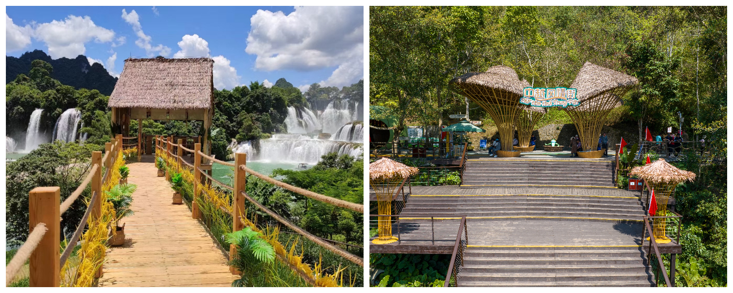 景區(qū)在堅(jiān)持跨境與綠色旅游理念的基礎(chǔ)上,精心規(guī)劃了包括六大觀景平臺、觀瀑茶舍、中越跨境街以及中越風(fēng)情街在內(nèi)的多個(gè)特色文化觀景與體驗(yàn)區(qū)域。這些區(qū)域不僅為游客提供了觀賞瀑布這一自然奇觀的絕佳視角,更搭建了一座深入理解和體驗(yàn)中越文化交流的橋梁。